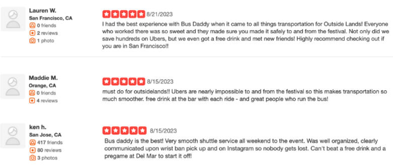 Transportation is provided by licensed third-party carriers holding valid CPUC operating authority. The Bus Daddy does not own or operate any vehicles.